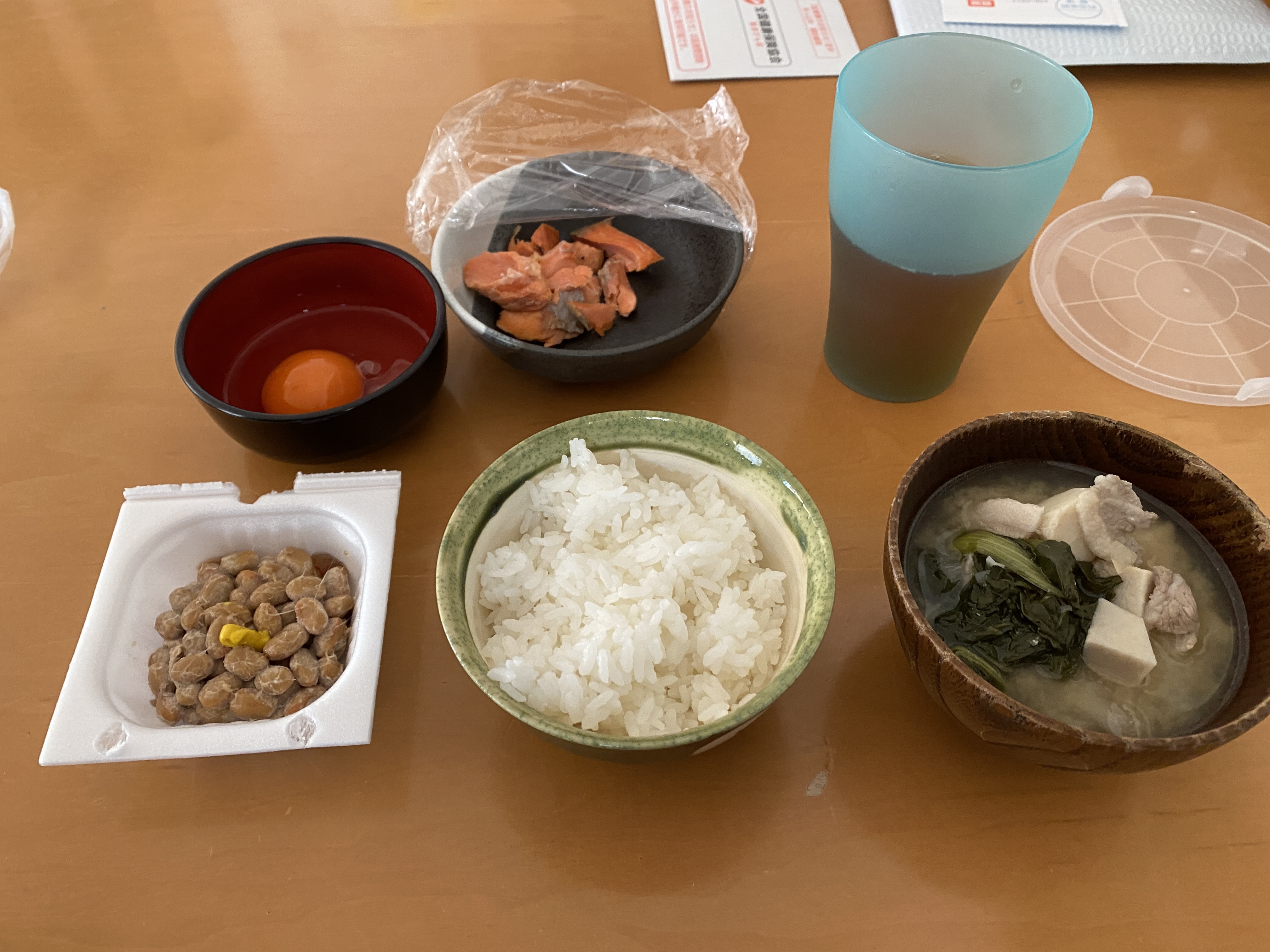 夜は、ゆで卵とお味噌汁。