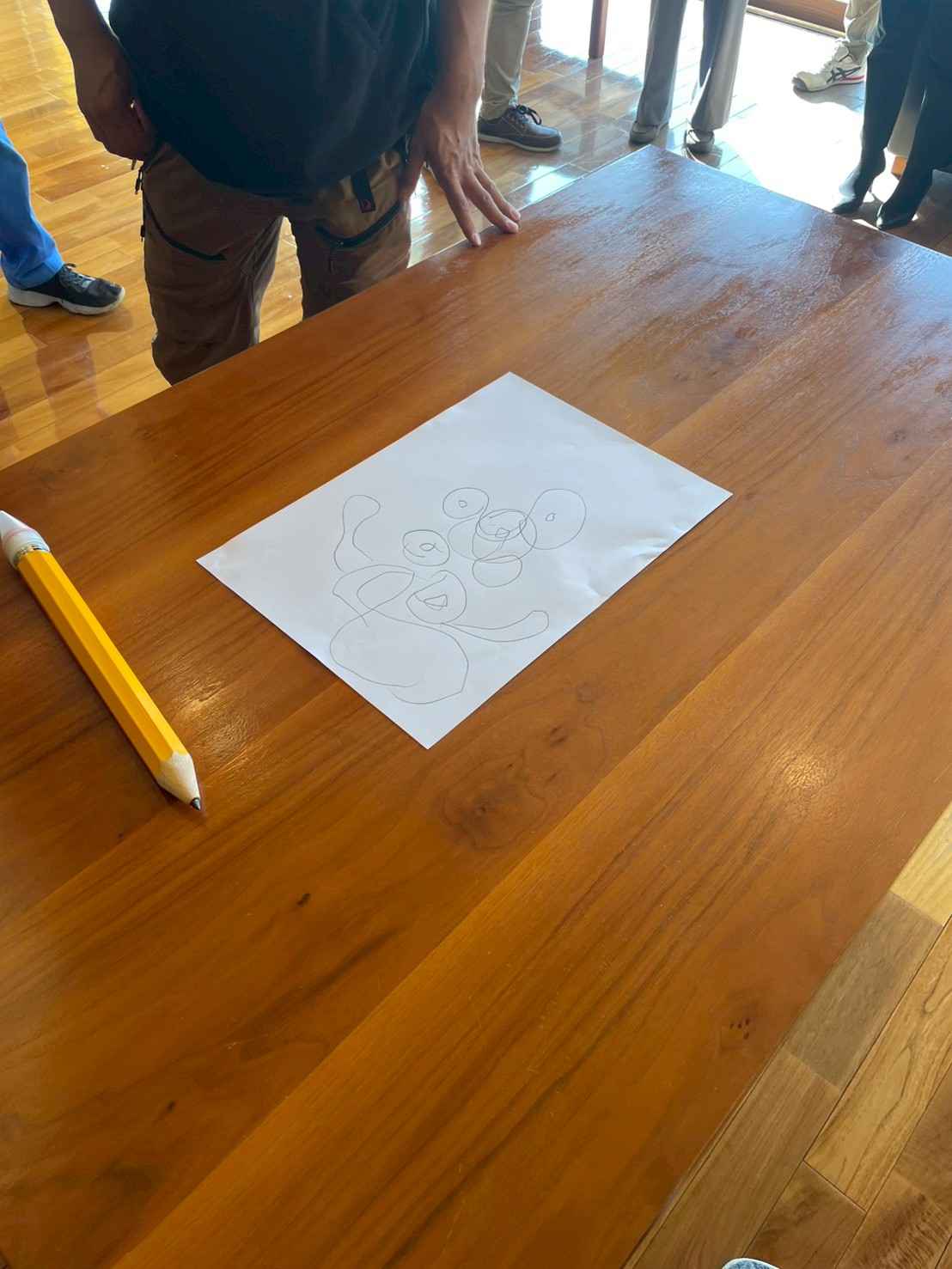 大きな鉛筆を使い、一つのお題をリレー形式で描いていくのですが、原型をとどめない絵に会場は大盛り上がり。