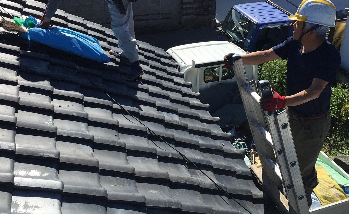 台風で瓦が飛散してしまいご相談頂きました。 横瓦を一度外し、漆喰を充填して再取り付けしました。 その後、瓦全体をしっかりと調整して完成です!