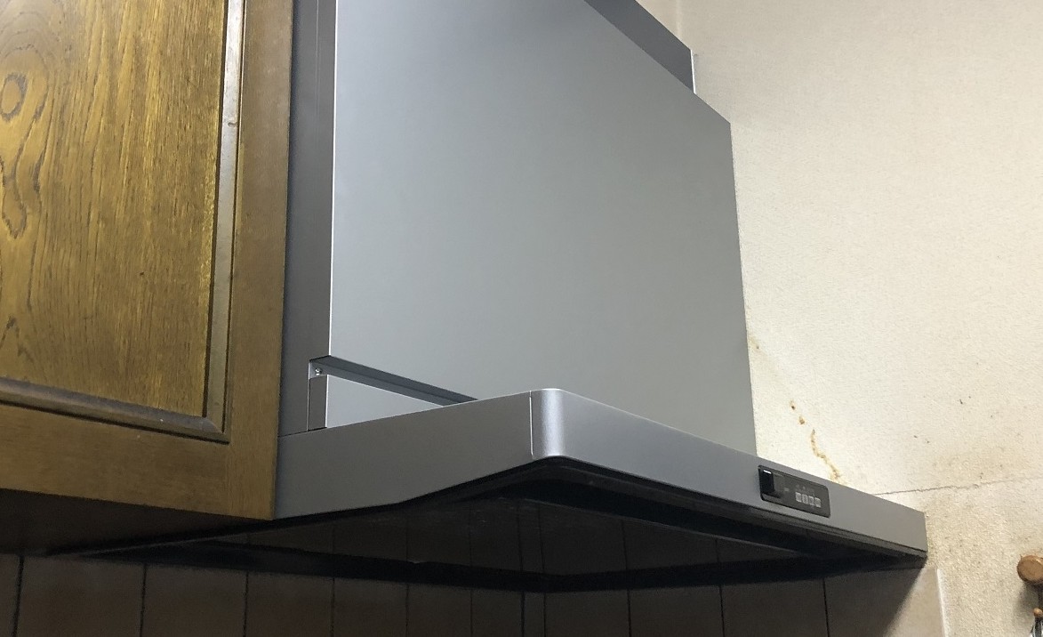 お掃除が大変なキッチンの換気扇。 お掃除がとっても楽なタイプに1日でリフォームが可能ですよ。