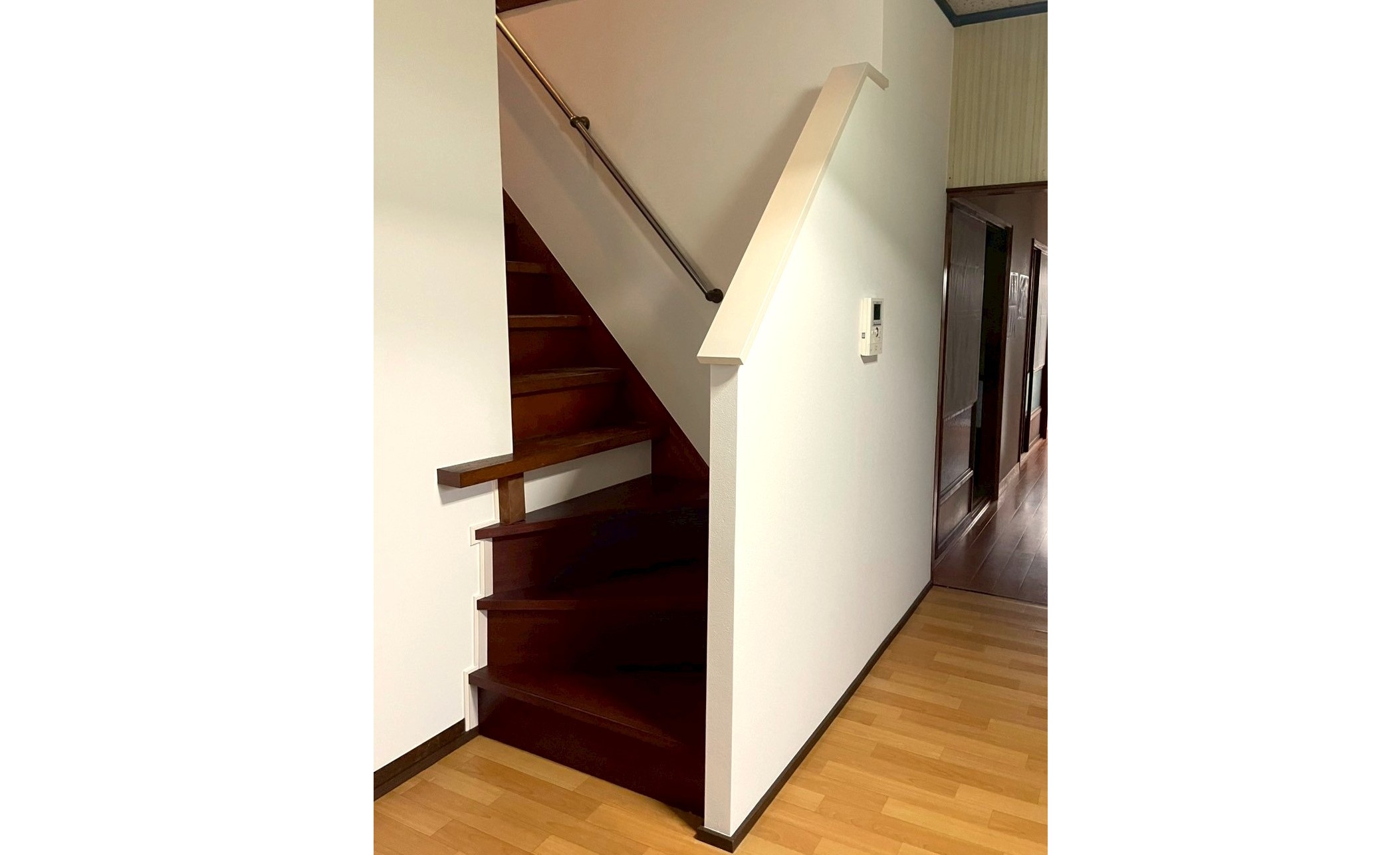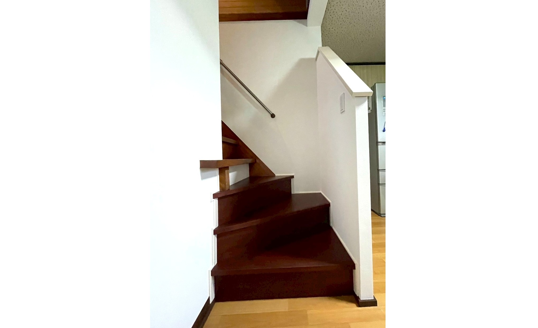 下の3段を新たにL字に折れる形にリフォームし、より安全な階段になりました
