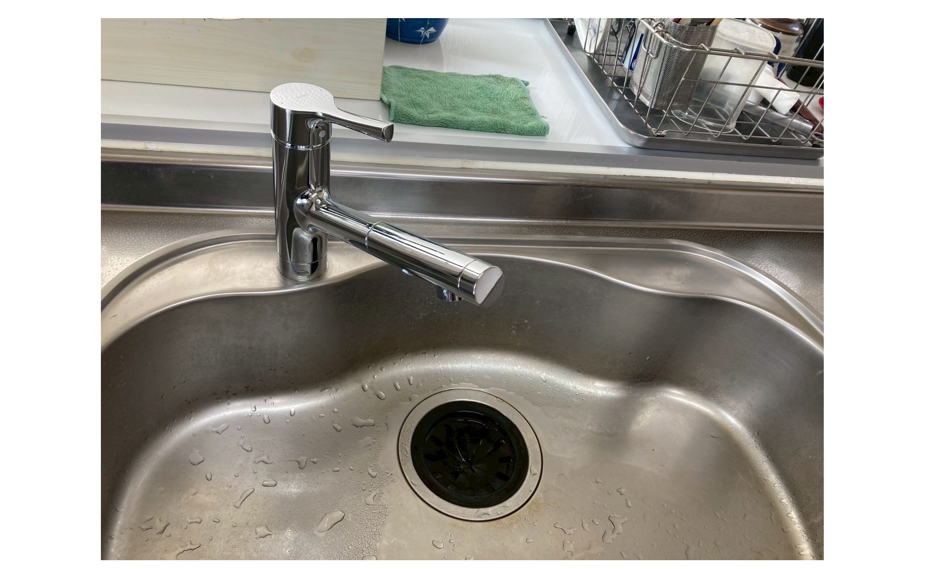既存はホースが伸びないタイプだったため今回は伸びるタイプを設置しました。