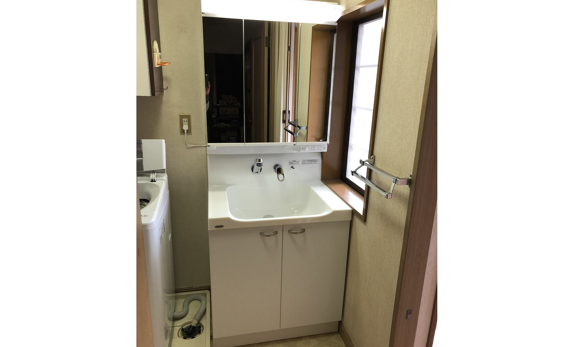 昔ながらの洗面台でした。収納もなく使い勝手がよくなく、この度取替することになりました。