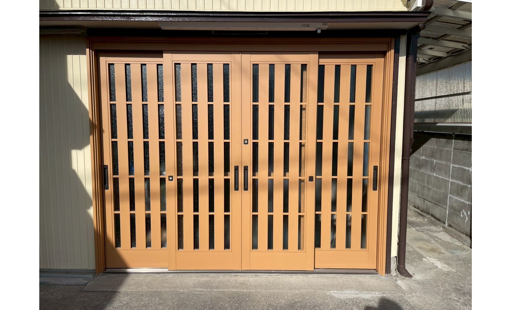 サイズが大きかったため4枚引き戸のドアを選定し、カバー工法(外壁の開口をいじらない方法)で行ったため、工期も1日で完成できました。