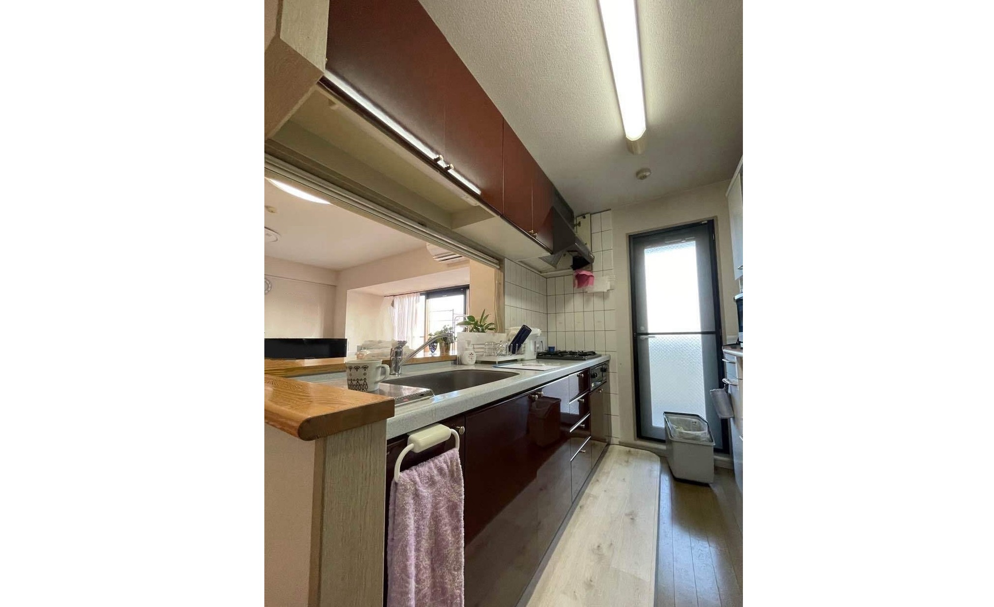 吊戸棚とカウンターを無くして、リビングとの一体感をより感じられるキッチンとなりました