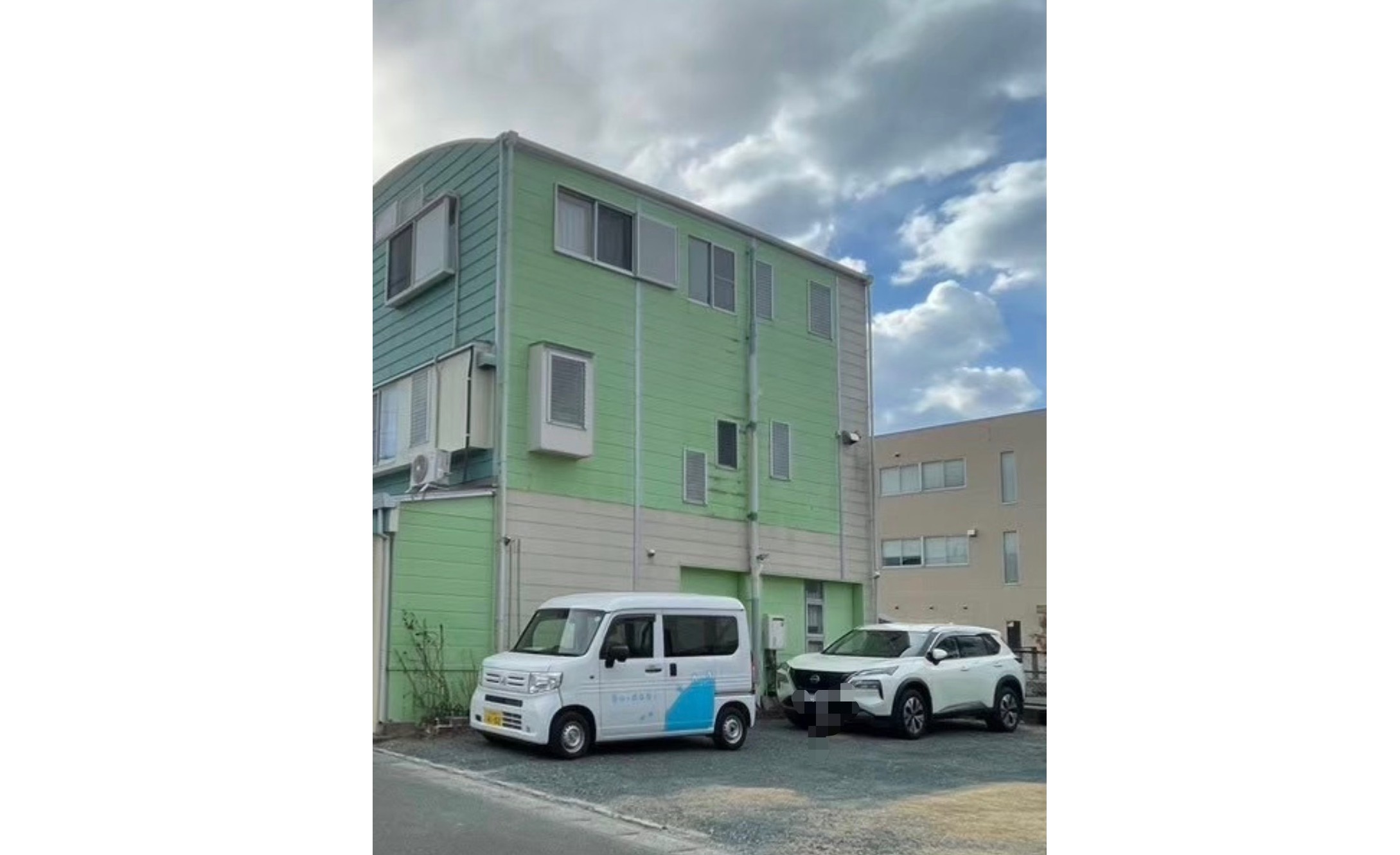 一番劣化している部分は塗装では劣化を補うことができない状態だったためガルバリウム合板を上張りし、その他は塗装で施工しました。