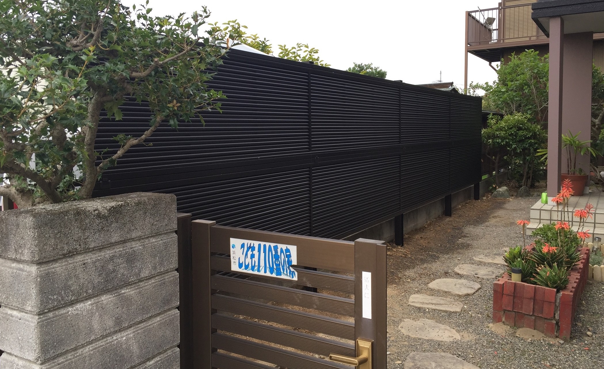 既存のフェンスは目が粗く、お隣同士が丸見えの状態でした。 お隣の方とのプラバシーを守るべく、目隠し率の高いフェンスをご提案させて頂きました。 目が細かいフェンスにしたことでプライバシーが守られます